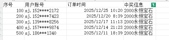 本公示的公示期为:2026年2月4日00:00:00-2026年2月8日23:59:59请所有中奖用户在名单公示期开始后的5个工作日内填写问卷星,逾期视为放弃中奖权益。问卷星链接:若无法跳转请手动复制链接至浏览器填写问卷。>>>前往 填写发奖账号填写问卷完毕后,奖品将在公示期结束后的14个工作日内通过端内领奖中心发奖。(迅游端内-右上角小耳机-领奖中心)。永恒宝石奖励以CDK的形式发放。点击此处前往领奖中心。中奖名单公示:参与活动用户及中奖情况一览: