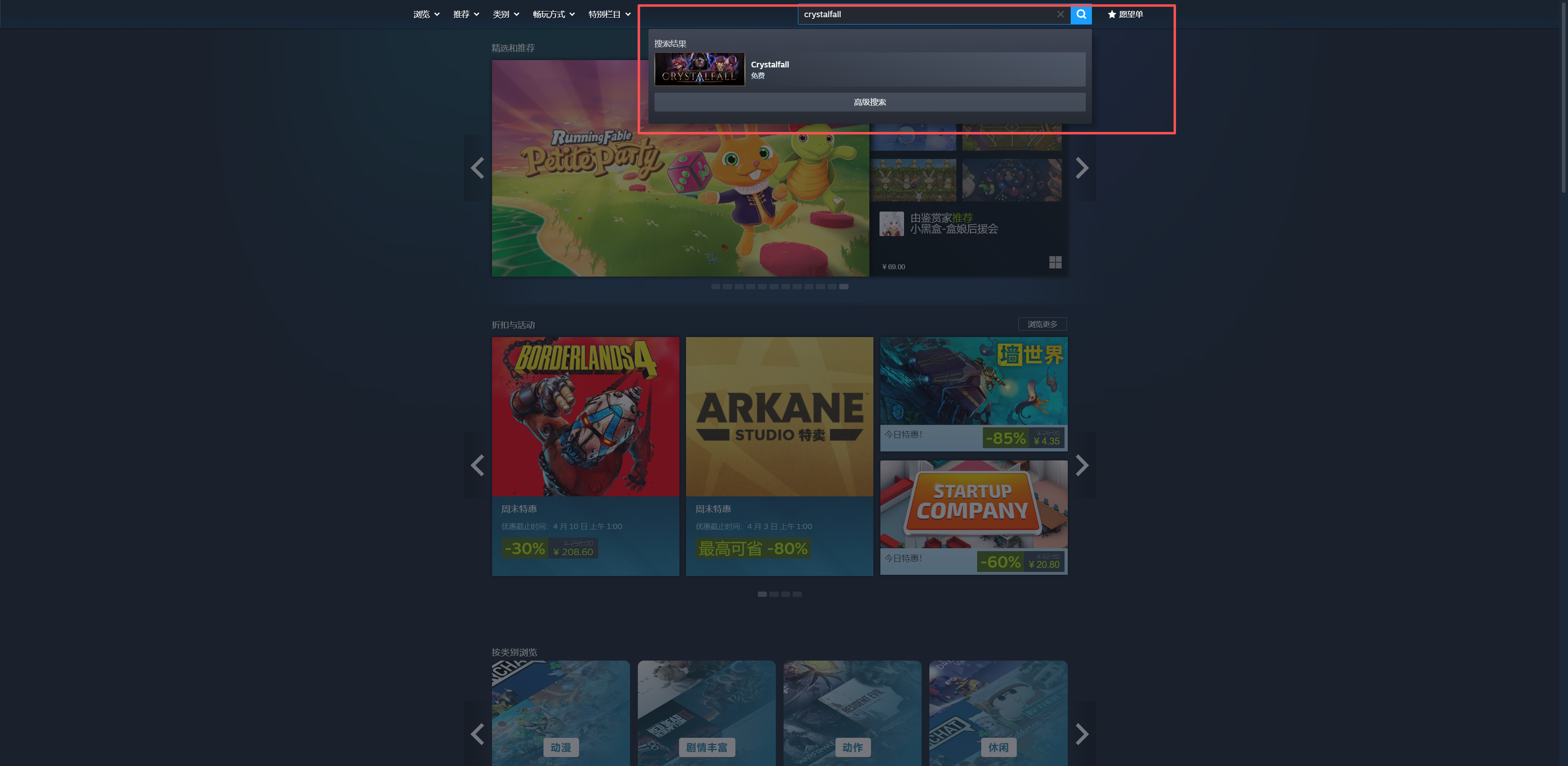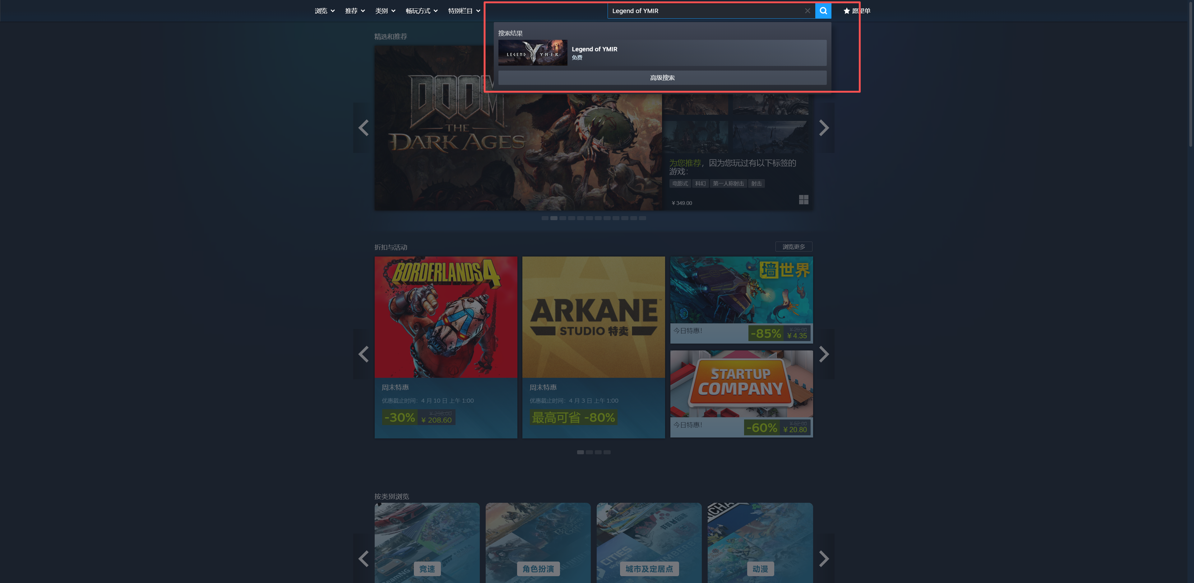 1.打开“steam商店”,在搜索栏输入“Legend of YMIR”后搜索2.待游戏发售后点击“添加到库”即可下载游玩