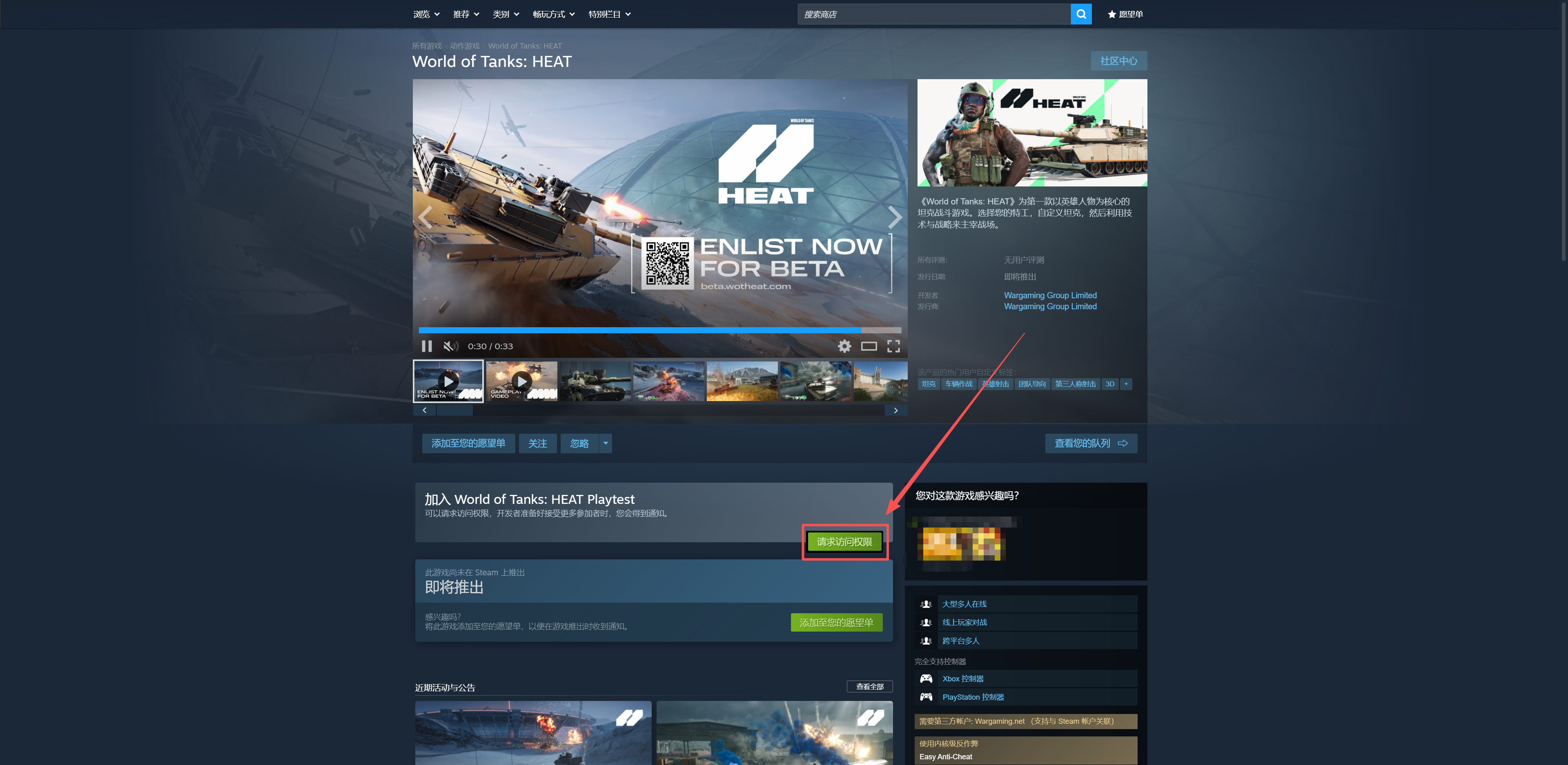 1.加速steam商店,进入游戏steam商店页面, 点击进入 ,点击“请求访问权限”2.申请成功,等待测试资格发放即可