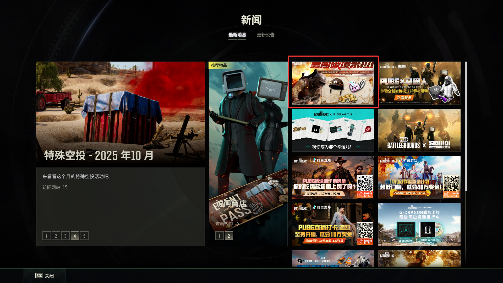 在这个有点后背发凉的季节中,风靡全球的马桶人(Skibidi Toilet)已经入侵到了 PUBG 的绝地战场!在限时上线两周的全新街机模式中,淘汰入侵米拉玛的马桶人,守护我们的绝地战场,让它们永远不敢再靠近吧!基本规则难度选择您可以在简单、普通、困难中选择一种难度游玩。关卡难度越高出现的首领数量就越多,能够获得的化学罐种类也各不相同。获得武器与道具将发放拥有无限弹药的手枪。从自动售货机中可以获得武器与道具,做好与首领战斗的准备吧!地图各处散落着补给箱,你可以从中获得道具淘汰马桶人。制作收集从不同难度关卡中获得的化学罐,制造更强大的武器吧!攻略淘汰首领马桶人召唤的普通马桶人,就能获得弹药和化学罐。 淘汰大型普通马桶人就能随机获得增益效果。首领马桶人准备使用范围攻击时,记得让它进入昏厥状态,妨碍它的攻击。淘汰所有普通马桶人和首领马桶人就能通关成功。通关成功时,通关过程中被淘汰的队友将在下一关卡复活。继承型物品游戏过程中获得的化学罐和化学罐宝箱可以被带到下一场比赛中继续使用。有计划地使用它们,争取通关所有关卡吧!上线时间(北京时间)2025年10月22日15:00 – 2025年11月5日8:00模式设置地图:米拉玛视角:第三人称队伍形式:仅支持四排玩法。可以获得街机积分与通行证 XP。 征服马桶人度过有趣的万圣节吧!活动通行证:马桶人※ 根据完成的通行证任务和生存时间,可以获得通行证 XP。警告!马桶人已入侵!开启“活动通行证:马桶人”守护绝地战场吧!道具列表活动通行证:马桶人($3.99)1级(100 G-Coin )销售时间(北京时间)2025年10月22日15:00 – 2025年11月5日8:00GPT2025现在介绍 2025 PUBG: BATTLEGROUNDS 电竞全球合作队伍的第二款队伍联名皮肤!销售时间(北京时间)2025年10月22日10:00 – 2025年11月19日8:00