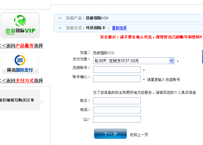 1、进入迅游充值中心:http://pay.xunyou.com/index.php/payment