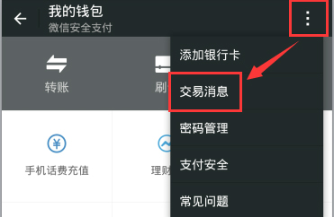 点击右上角的“菜单”,选择“交易消息”