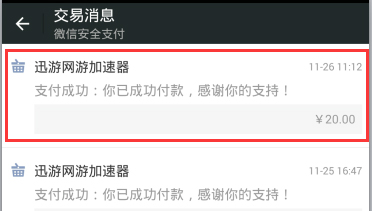 点击支付给迅游的交易记录
