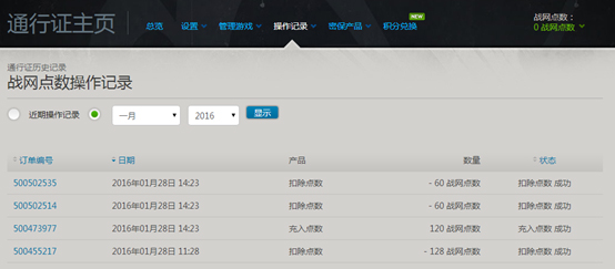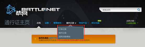 登陆后选择“管理我的游戏>前往战网通行证主页”,可以直接看到“战网点数”。如果有疑问请选择“操作记录”。