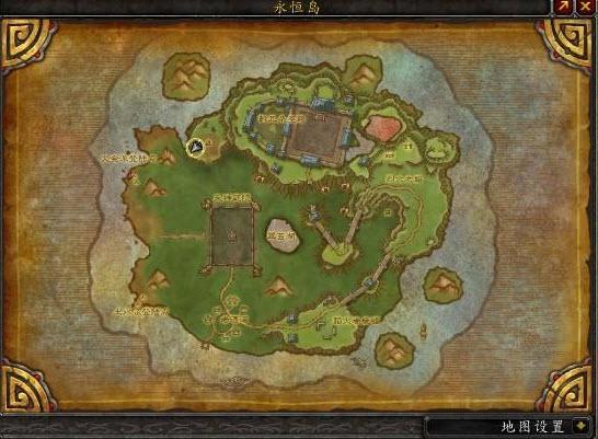 按照惯例,每一个新的补丁都会增加一个新的地图区域,在5.4补丁中,暴雪为大家带来的新的区域地图为永恒岛。永恒岛是位于翡翠林东边90级的PvE区域。你可以只身前往寻找这座岛屿,或与小队成员一起收集永恆硬币(可用来向当地人购买各种装备),或者迎战巨型怪物或危险的世界首领。对于参与拉西奥传说任务的冒险家来说,这里有“野牛人火神”斡耳朵斯与四位至尊天神,正等着挑战你们的勇气与毅力。与前几个版本的接引任务一样,玩家只要来到锦绣谷便会自动接到任务要求你前往魔古山宫殿的二楼与游学者声望地点门外的克罗米对话,之后就可以使用她给我玩家的道具传送到永恒岛了。在新的地图里,玩家可以进行新的探险和寻宝。