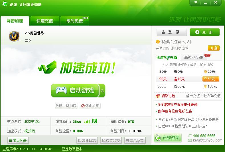 笔者抓紧时间进入了游戏,刚进入游戏我发现我的延迟在200左右,这还怎么玩,正好,世界频道再喊雷神队,当时也没太在意我就直接进去了。结果进入副本之后,网络的延迟和卡顿根本没有办法玩,作为一个治疗T,好几次虽然我看到队友现在需要治疗,但是当我准备点上的时候却发现根本没有任何效果,当反应过来的时候,队友已经幽怨的躺在地上了。就这样因为我的卡顿,我们在副本中被团灭了两次,团长直接把我T了。心情极其郁闷的我,忍不住来到了贴吧里吐槽,很多热心的吧友一般欢乐的笑着,一边给我出着各种主意,但是基本没有一个靠谱的,就当我绝望的时候,有一个吧友告诉我开一开迅游网游加速器吧,以前他也碰到过这种情况,就非常的好用,让我也试一下。